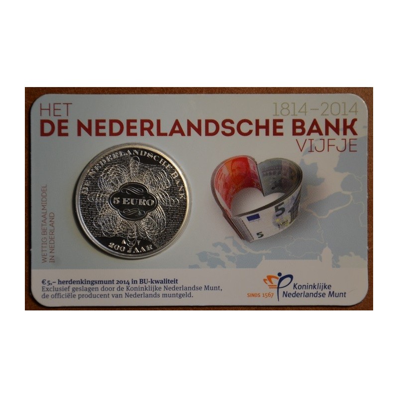 5 Euro Netherlands 2014 - 200 years of the bank (BU card)