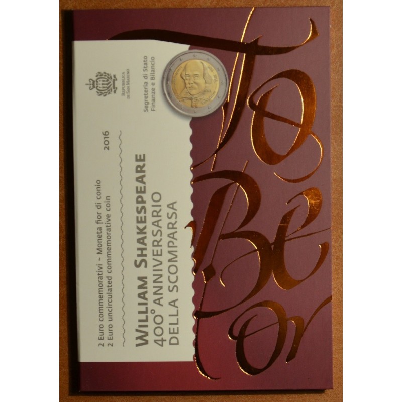 Vzor znázorňuje portrét básnika. Na pravej strane sú v polkruhu uvedené dátumy „1616 – 2016" a názov vydávajúcej krajiny „San Maríno"; vpravo dolu sa nachádzajú iniciály umelca „MB". Vľavo je v polkruhu uvedený nápis „William Shakespeare"; vľavo dolu je umiestnená značka mincovne „R".