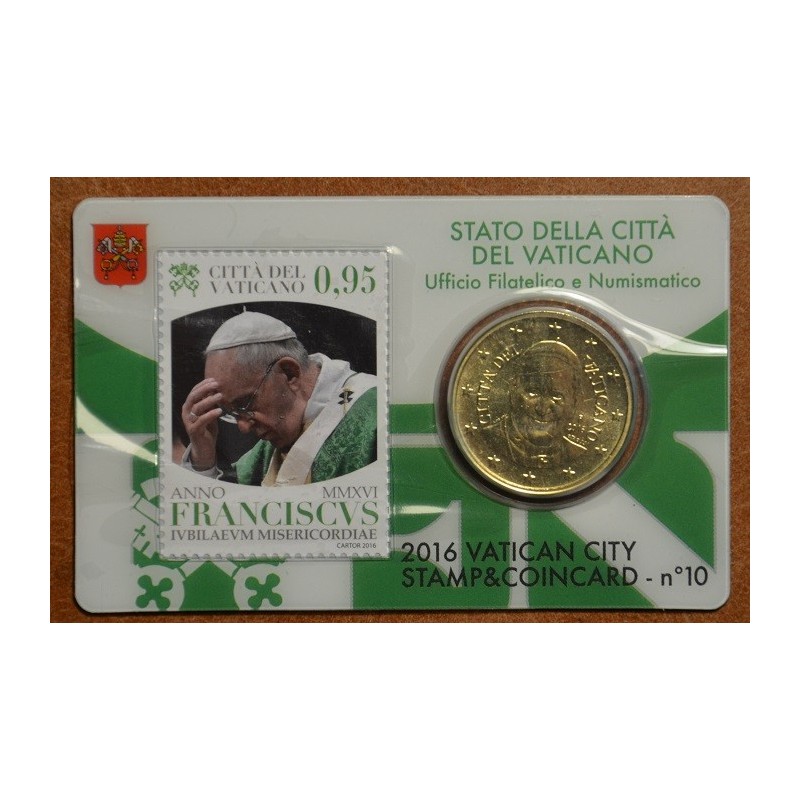 50 cent Vatikán 2016 oficiálna karta so známkou No. 10 (BU)