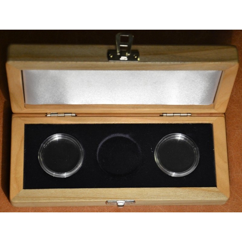 Euromince mince Luxusná drevená kazeta na tri 2 Euro mincu v kapsul...