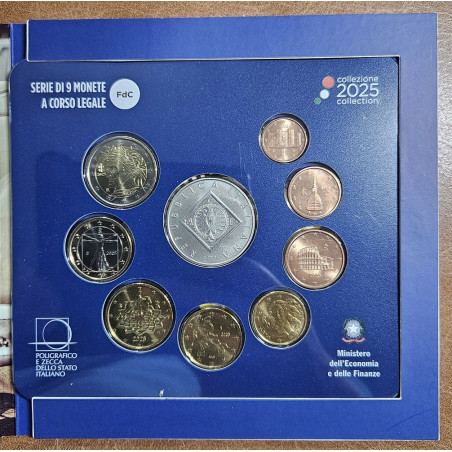 The set contains the 8 circulating coins 2025 and the 3 euro silver coin dedicated to the 120th Anniversary of the Foundation of ACI - Automobile Club d’Italia, all in Brilliant Uncirculated finish.