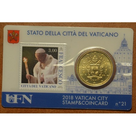 50 cent Vatican 2018 official coin card with stamp No. 21 (BU)