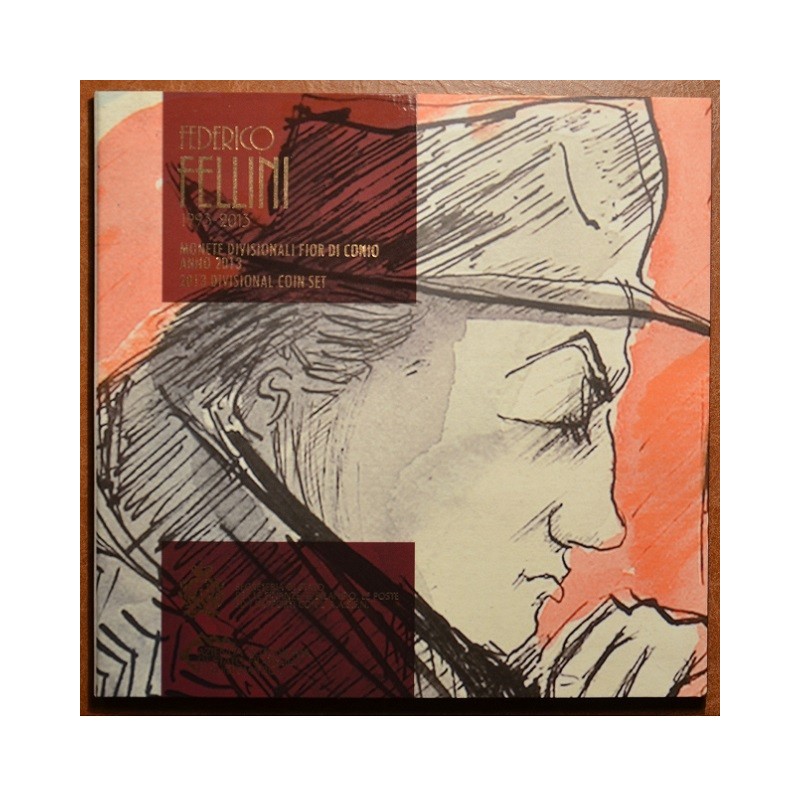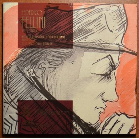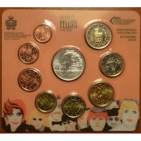 Official coin set of San Marino 2013 in brilliant uncirculated quality with 9 coins: from 1 cent to 2 euro + 5 Euro Silver coin with the theme of the “Federico Fellini”.