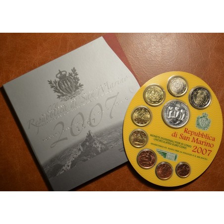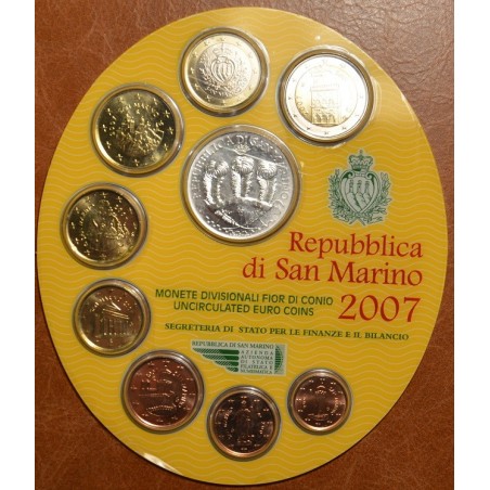 Official coin set of San Marino 2007 in brilliant uncirculated quality with 9 coins: from 1 cent to 2 euro + 5 Euro Silver coin.