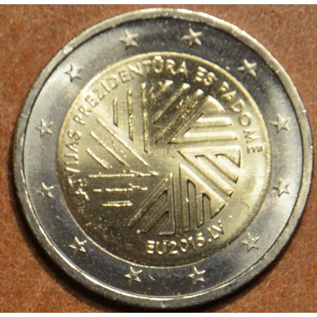 Az érme a lett elnökség hivatalos jelét ábrázolja, Gunārs Lūsis munkája. A logo körüli szöveg - "LATVIJAS PREZIDENTŪRA ES PADOMĒ" jelentése Lettország Európa úniós tanácsának elnöksége, valamit egy hivatkozás a hivatalos honlapra: EU2015.LV.